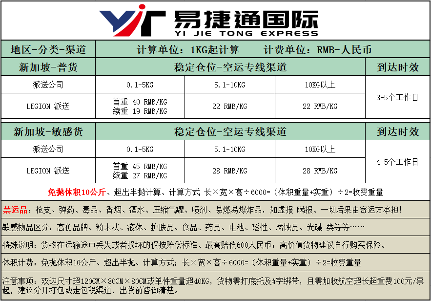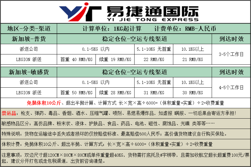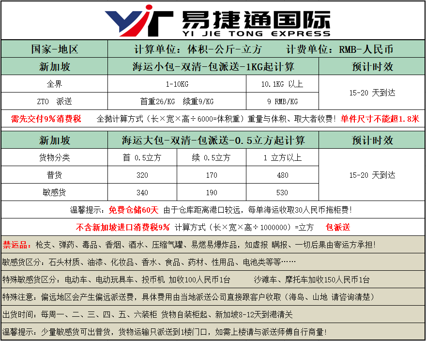 1、以上报价仅供参考,实际计费以装箱打包后的实重或轻泡体积重来计算。